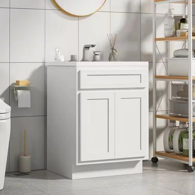 Vanity Cabinet comes with a Cultured Marble White Round Single Sink Vanity Top in White with built in backsplash, soft-closing door mechanism that caters to your basic storage needs. The cabinet features high-quality birchwood construction that ensures excellent reliability and longevity. It has a smooth and classic white exterior.